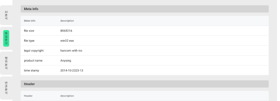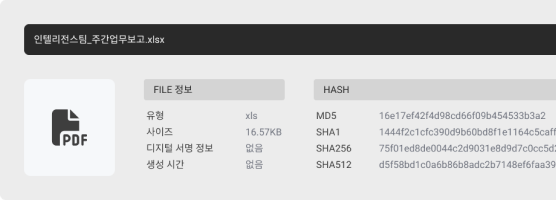 파일유형, 파일크기, 서명정보, 생성시간, 각종 해쉬값 제공